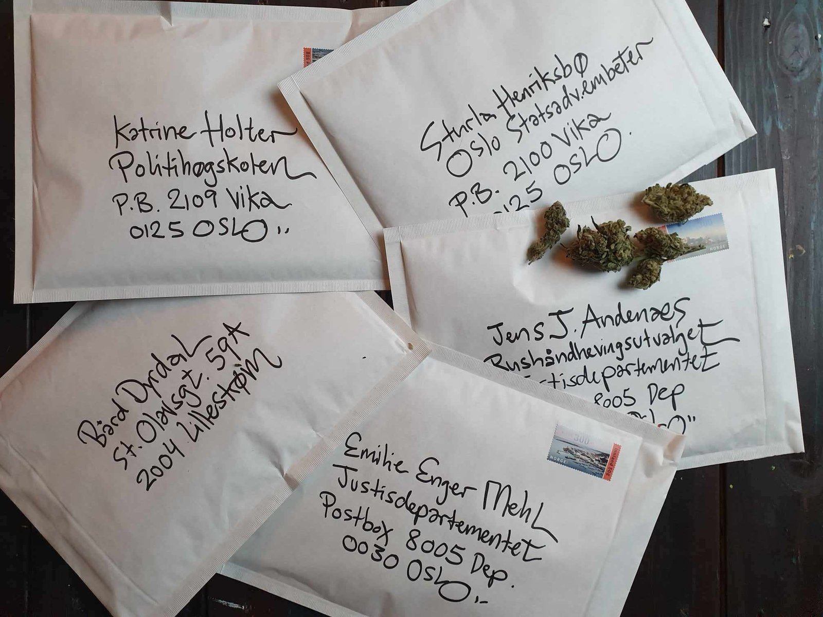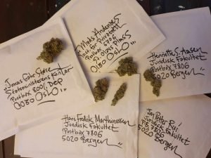 Em declarações ao CannaReporter, Roar Alexander Mikalsen, presidente da AROD [The Alliance for Rights-Oriented Drug Policies] disse que não teve “notícias da polícia” depois de um total de 200 gramas de canábis terem sido enviados em dez cartas aos responsáveis pela política norueguesa de drogas. “No entanto, 200 gramas de canábis foram colocados na balança da justiça e a necessidade de desenvolvimento jurídico é óbvia”, afirmou Mikalsen.