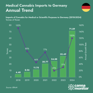 A remoção da canábis da lista de narcóticos desencadeou um aumento acentuado das prescrições, transformando a Alemanha num estudo de caso em expansão de mercado controlada e regulamentada. Assim, o país tem o potencial de se tornar a maior estrutura “medicalizada” do mundo.